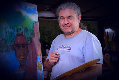 O Artista: Gustavo Burkhart é diretor do Ateliê Burk'Arte, artista visual, poeta, músico e professor.