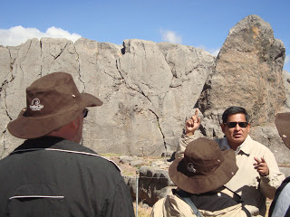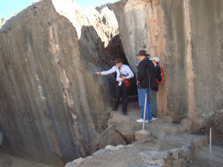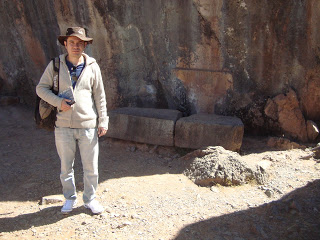 Kenko tem dois lugares,"El grande" que se encontro a meio caminho desde Sacsayhuaman(sitio arqueológico onde se comemoram a festa do Inty raimi) até Pisac(Sitio Arqueologico do vale sagrado dos Incas)até "El Chico"a 350 metros a oeste(Azimute?) Obs:na foto nosso grupo e o expedicionário André com sua frase primorosa sobre o trabalho dos Incas nas Rochas"desculpindo nossa falha".
